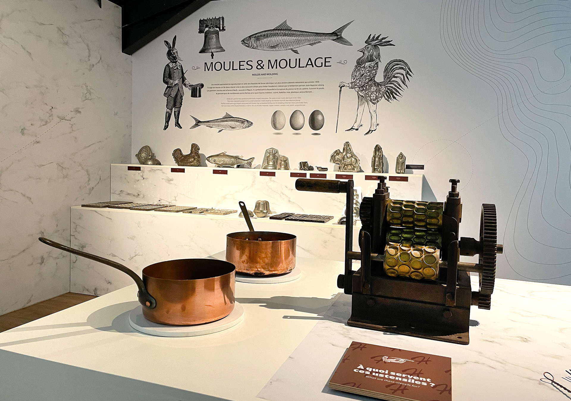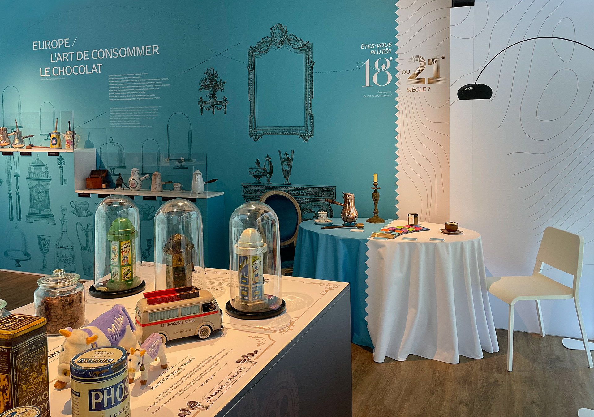 Une expérience immersive, ludique et attractive autour du cacao à travers un univers fantastique et interactif. Plusieurs pièces thématisées, des animations, des jeux, des dégustations rythment le parcours du visiteur. Aux côtés de la muséographe Céline Nadal et de la société Bréard pour l'impression et la pose, j'ai conçu pour ma part l'ensemble de l'univers graphique de ce parcours menant le visiteur à voyager dans le temps, à la découverte du chocolat.